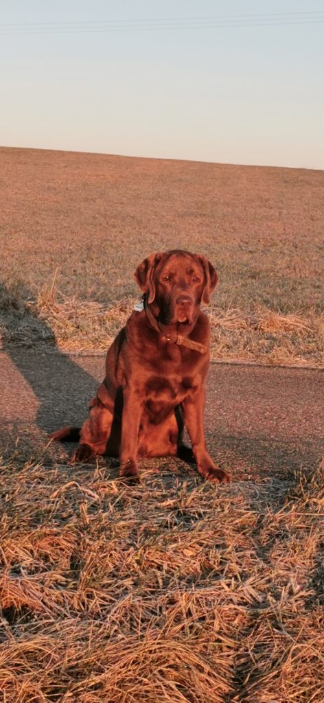 unser Klärchen hat sich prächtig entwickelt! 9 Monate alt ist sie jetzt und sie misst 55 cm. Wir sind mit ihr seit der Welpengruppe in der Hundeschule Satke, mittlerweile sind wir bei den Fortgeschrittenen. Wir können auch in Gegenwart anderer Kurshunde ohne Leine bei Fuß gehen, mit Kehrt, Sitz, Platz, Warte und Abruf („zu mir!“). Neulich ließ sie sich sogar aus dem Spiel mit anderen Hunden abrufen. Und das mit 9 Monaten! Aufgrund der gegenwärtigen Situation treffen wir uns mit unserem Trainer und dessen Hund „zufällig“ draußen 😀