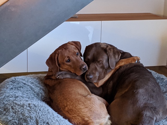nachdem ich die Welpen von Roya, also quasi die Geschwister von Hanni, gesehen habe, wollte ich Dir gerne schreiben, um dir zu erzählen, wieviel Spaß es mit Hanni macht! Sie ist genauso wie du es vorhergesagt hast: Personenbezogen (vor allem auf mich :-)) , gepfeffert und lustig. Sie will einem unbedingt alles recht machen, sie ist sehr gelehrig, sie ist unheimlich charmant und es ist tatsächlich schwer sie zu schimpfen, weil sie so verdammt süß ist…..Sie ist völlig anders als Lilo und macht es dadurch spannend und in vielen Fällen leichter für uns. Sie hat sich als extrem guter Fährtensucher herausgestellt, so dass wir inzwischen Einzelstunden nehmen, um mit ihr weiter zu arbeiten. Es macht ihr super viel Spaß und dazu macht es uns auch einen riesen Spaß! Sie ist anhänglich und so verschmust, dass jeder in der Familie garantiert nicht zu kurz kommt. und sie hat so ein angenehmes Wesen, dass sie mit jedem Hund, garantiert mit jedem Hund zurecht kommt, vollkommen der Wahnsinn.Wir sind rundum glücklich!Vielleicht hast du mal wieder eine Stunde übrig, dass wir dir die beste einjährige Hündin vorführen und natürlich die allerbeste 11 jährige. Lilo geht es gerade sehr gut. Sie wird jetzt alt, aber immer wieder mit einem Anflug von Junghund (wegen Hanni ;-)). Sie ist gemütlich beim Gassi gehen, schläft viel und genießt das Rentnerdasein. Allein wenn es ums Fressen geht, dann geht fast alles. Sie versucht sich jetzt auch in Fährtensuche, nachdem sie mitbekommen hat, dass es zur Belohnung immer einen Jackpot gibt! Ich lach mich jedes Mal schlapp!