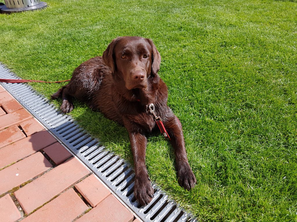 Ella ist ein richtiger Familienhund – wir sind ein richtig gutes Team! Am liebsten – neben Fressen natürlich – spielt Ella im Garten und gestaltet ihn nach ihren Vorstellungen um:-).