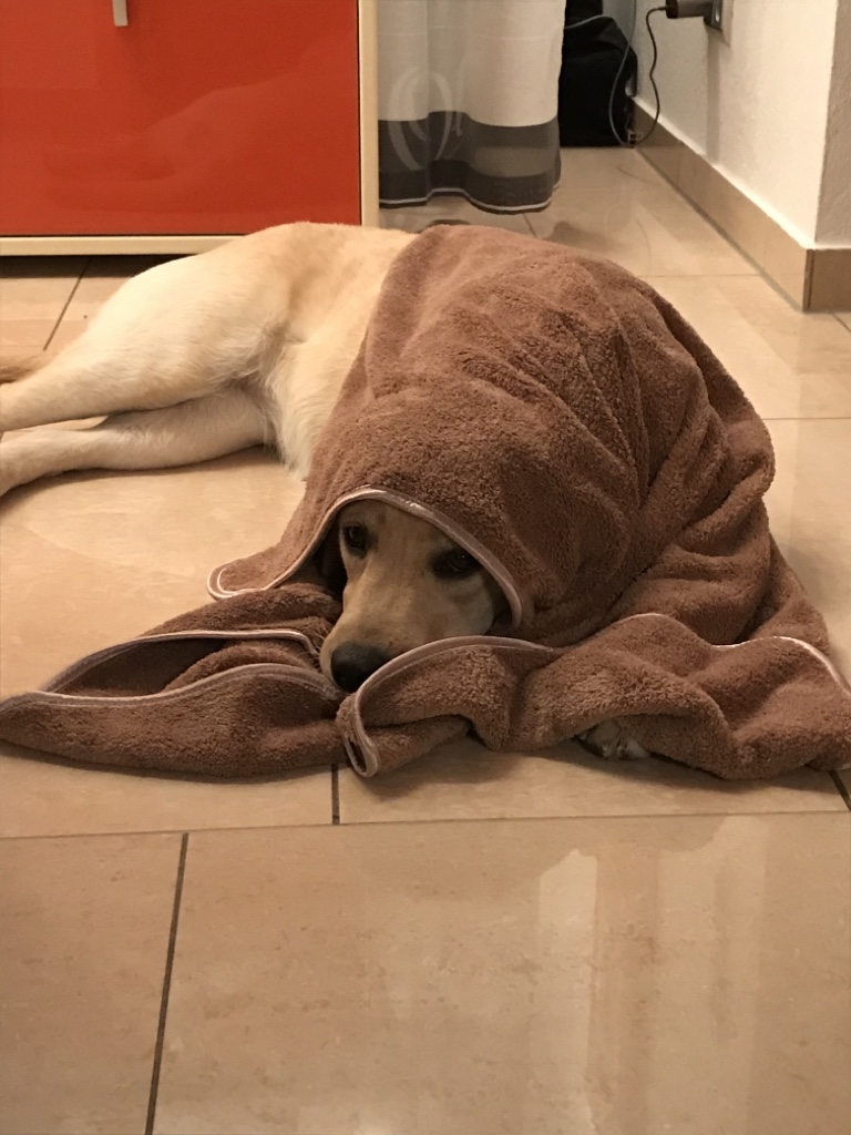 Und ich darf jetzt mein Frauchen beim arbeiten begleiten im Altersheim, das macht mir sehr viel Spaß und danach bin ich auch kopfmäsig müde…