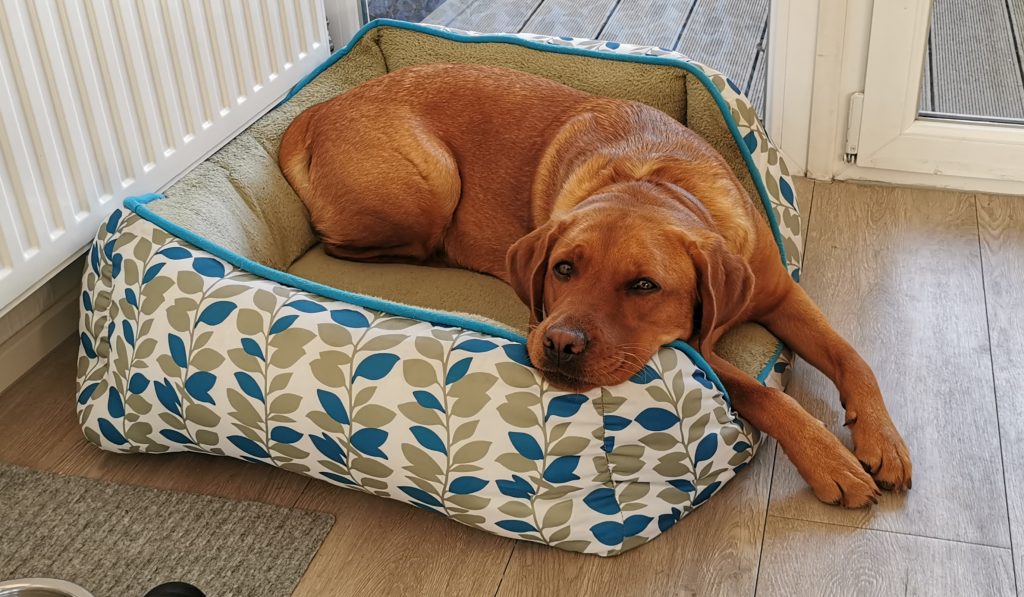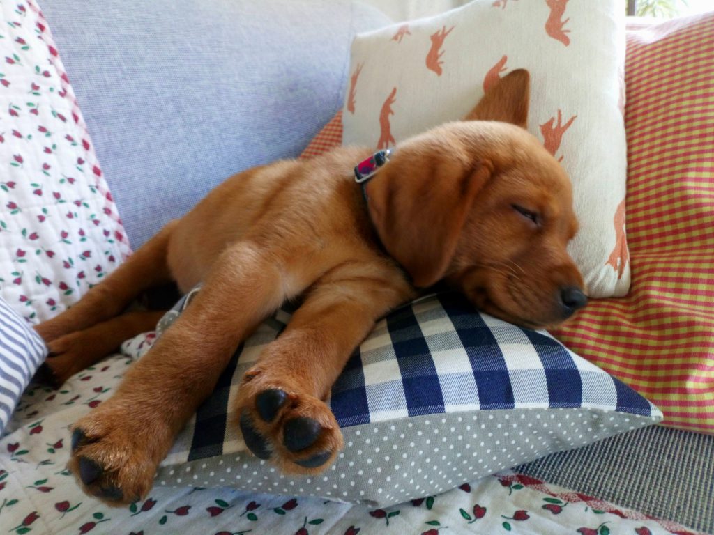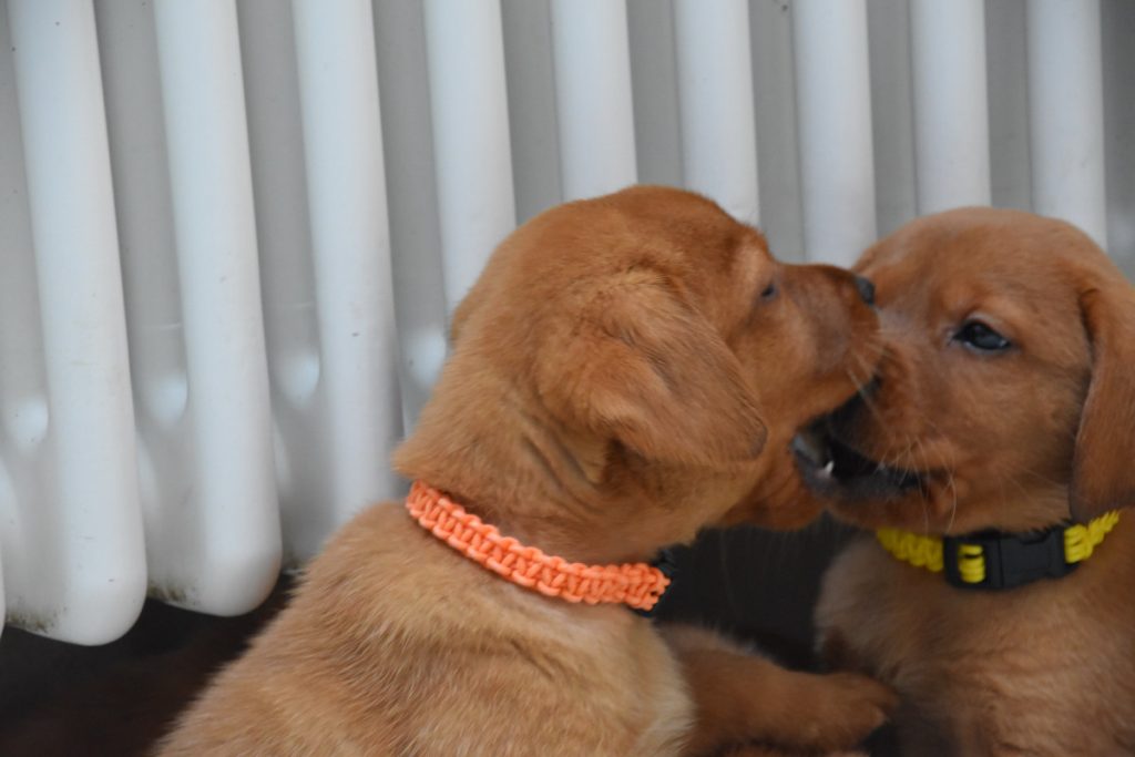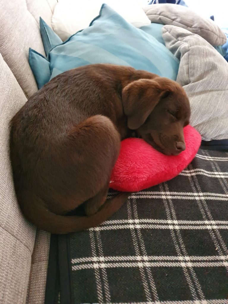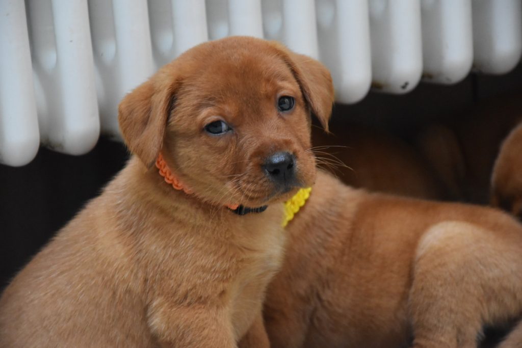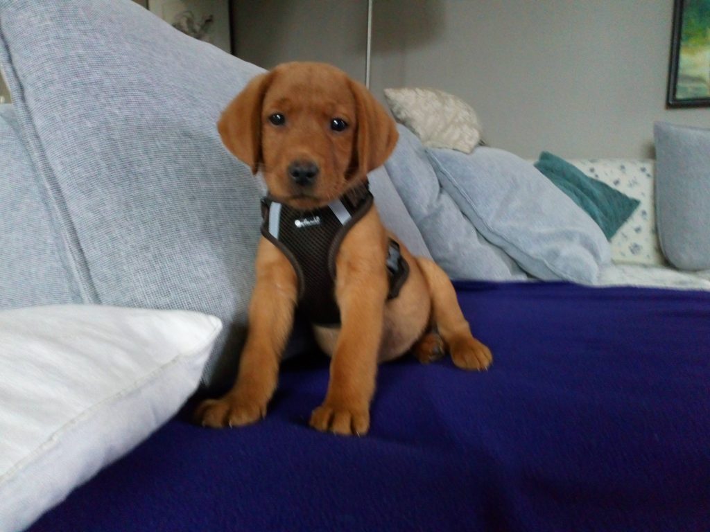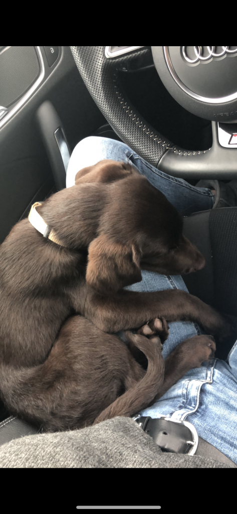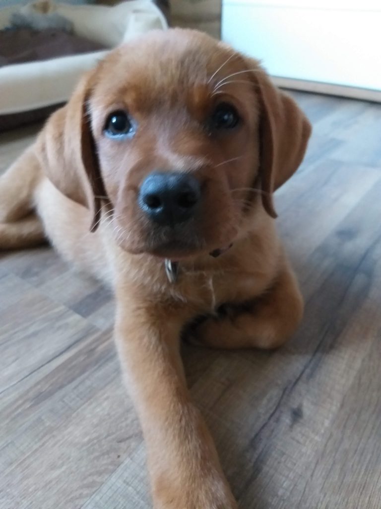 Liebe Tanja, hier mal ein kleines Update von Milow ehemals Max. Milow hat sich sehr schnell an sein neues Zuhause gewöhnt. Ich hatte ihm am Anfang ein Hundebett neben mein Bett gestellt damit er in meiner Nähe ist. Am Anfang fand er den Schuhschrank nachts jedoch bequemer. Jetzt hat er ein Hundetipi damit er seine eigene kleine Höhle hat und er liebt es. Ich habe Milow nach der ersten Woche beim Spazieren gehen abgeleint, da wie zuvor im Garten das Abrufen geübt hatten und es immer geklappt hat. Seitdem läuft er nur an der Leine wenn wir an der Straße gehen. Das Abrufen funktioniert bei ihm super und ich hoffe das bleibt auch so. Egal welche Ablenkung er hat sobald ich ihn rufe kommt er angerannt. Auch Sitz, Platz und Pfötchen kann er mittlerweile. Ich muss sagen er lernt ziemlich schnell. Seit dieser Woche bringt er auch den Snackdummy wenn ich ihm diesen werfe. Vor vier Wochen war ich das erste Mal mit ihm in der Welpenschule und gehe seitdem jeden Samstag mit ihm dort hin. Und ich würde sagen, dass er gerne dort hin geht. Bis jetzt versteht er sich sehr gut mit anderen Hunden und möchte immer mit jedem spielen. Auch mit unserem 8-jährigen Labrador versteht er sich mittlerweile. Am Anfang war unser Großer über den Nachwuchs nicht so begeistert, da er nicht mehr die alleinige Aufmerksamkeit hatte. Doch nach wenigen Tagen hat sich das gelegt und seitdem spielen die beiden jeden Tag miteinander und gehen regelmäßig zusammen spazieren. Ich habe Milow von Anfang an überall mit hingenommen. So konnte er sich gleich an viele Sachen gewöhnen. Ich habe mit ihm auch bereits ein Behindertenwohnheim besucht. Die Bewohner haben sich sehr über ihn gefreut und er auch über sie. Milow ist von seinem Charakter sehr einfühlsam, ruhig und verkuschelt. Ich habe das Gefühl, dass er merkt wenn es mir mal nicht gut geht und dann noch verkuschelter ist oder mir Spielsachen bringt um mich abzulenken. Und das schafft er auch meistens. Milow schläft am liebsten auf oder an mir, was immer schwerer wird weil er immer größer wird. Aktuell schläft er ca. 9 Stunden nachts durch. Ich gehe meistens um zehn nochmal mit ihm raus und dann weckt er mich gegen sieben, weil er sein Fressen möchte. Danach ist es tagesabhängig ob er wachbleibt oder sich nochmal hinlegt und schläft. Zum Schluss möchte ich sagen, dass ich wirklich sehr froh bin den kleinen bei dir gekauft zu haben! Liebe Grüße und bis bald Cara Schlör