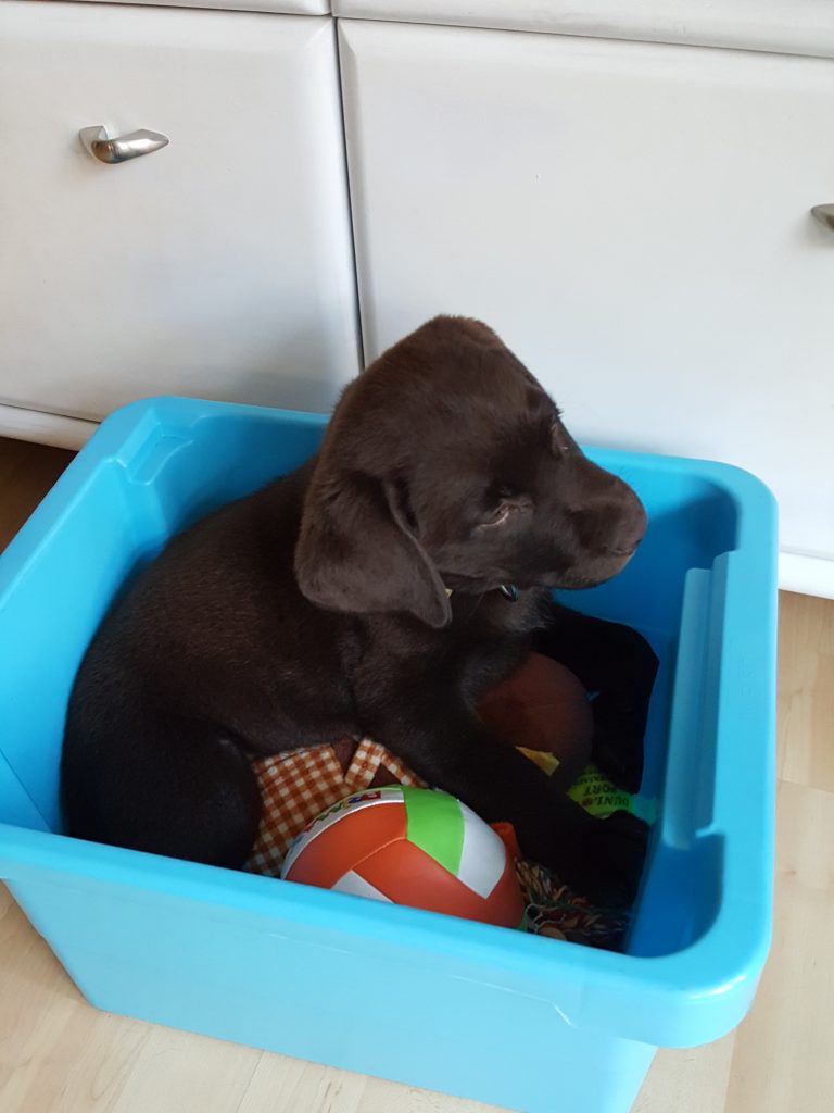 nun sind die ersten zwei Wochen schon vorbei und Ella hat sich super bei uns eingewöhnt und fühlt sich sehr wohl. Sie hat sich auch schon mit einigen Nachbarshündinnen angefreundet und auch die Nachbarskinder finden Ella sehr süß. Das Schlafen in der Box funktioniert sehr gut – bereits nach der vierten Nacht schlief sie alleine in ihrer Box im Wohnzimmer und hält bis zum Morgen durch. Auch alleine bleiben – das Training für Schule und Arbeit- klappt schon einige Zeit. Das Autofahren hat Ella schnell gelernt und winselt nicht mehr. Das Thema Sauberkeit im Haus klappt bis auf wenige Ausnahmen ganz gut.