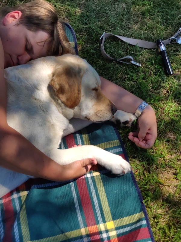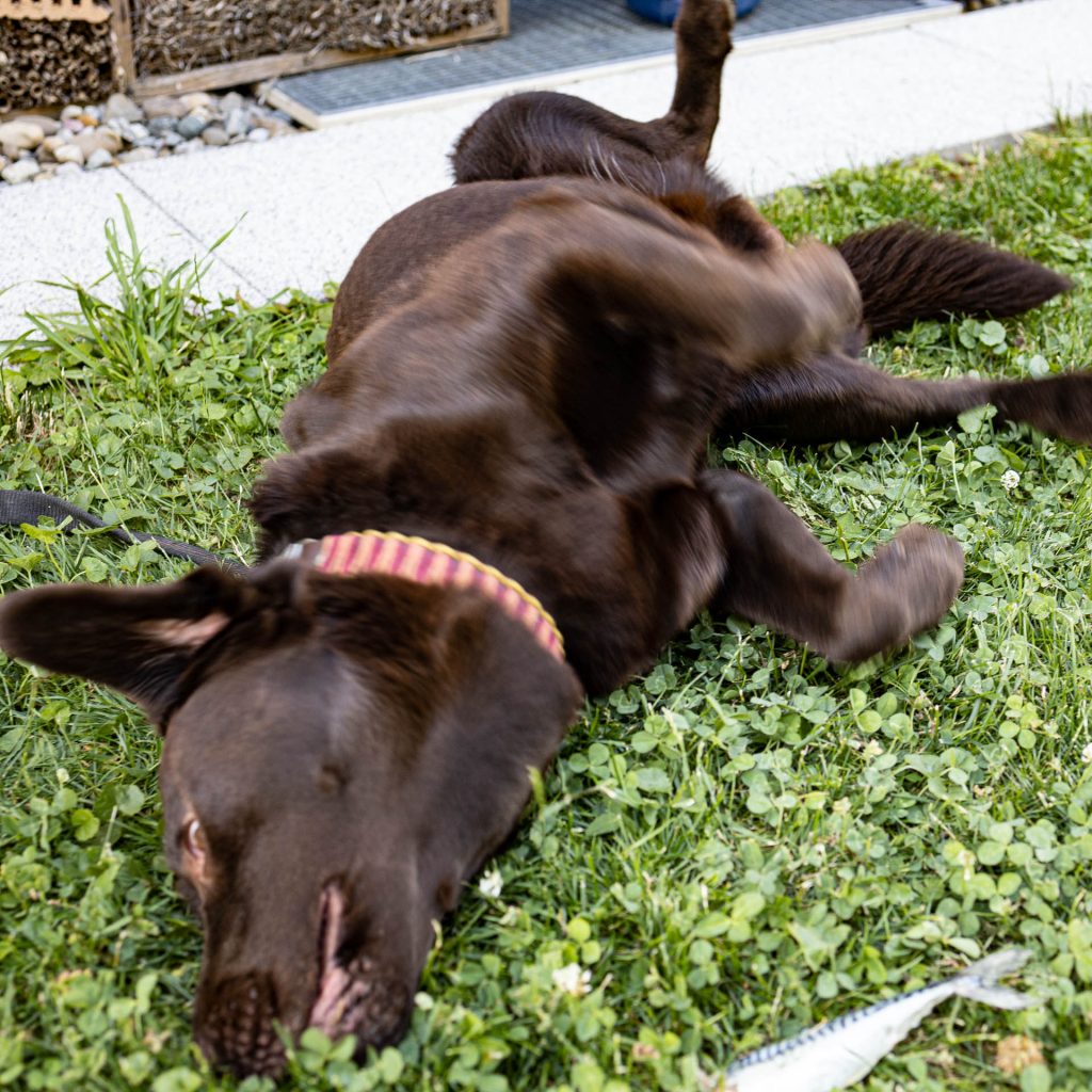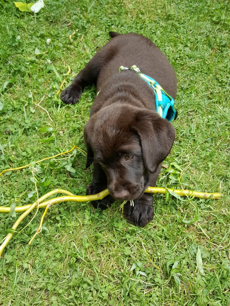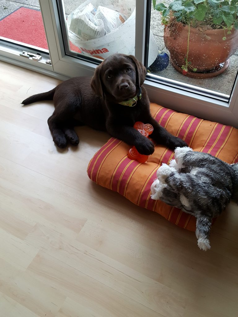 Vor fast genau 3 Jahren haben wir ihn zum ersten Mal gesehen und bald darauf konnten wir ihn abholen.Er hat sich bei uns prächtig entwickelt.Welpenkurs, Junghundekurs, … viel Training – vor allem für uns :-).Mittlerweile ist er 3 Jahre alt und macht uns viel Freude.Er liebt das Wasser und das Spazieren gehen – 3x täglich – am liebsten im Wald.Und natürlich liebt er das Fressen – wenn ich eine Banane hole, dann kommt er sofort – egal wo er grad ist – keine Ahnung wie er das immer merkt, aber sonst wäre er kein Labrador :-).Nach dem Fressen liebt er es mit Frauchen oder Herrchen oder den Kindern zu spielen/raufen – oder dem Ball oder einem anderen Spielzeug hinterherzurennen – sich darum zu balgen – anzuschleichen, …Was machen wir sonst noch:Apportieren – nicht lange interessant, SniflDog – auch zwischendurch mal gerne (ist aber kein Problem für ihn), Versteckte Sachen suchen – au ja, am liebsten aber die Nase am Boden und Markieren wo es geht (aber nur wenn er die Erlaubnis hat) – sonst läuft er brav neben her – auch ohne Leine.