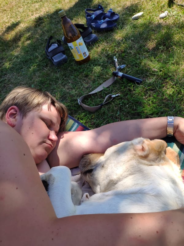 Unser Hund liebt: Gießkannen, Seile, Staubsauger und sie hat sogar ihr eigenes Zelt (ein altes Spidermanzelt ), meine Himbeerstauden,unseren sorgsam abgedeckten Teich, Kisten und ihre Kissen -:). Außerdem kuschelt sie sehr gerne mit uns.