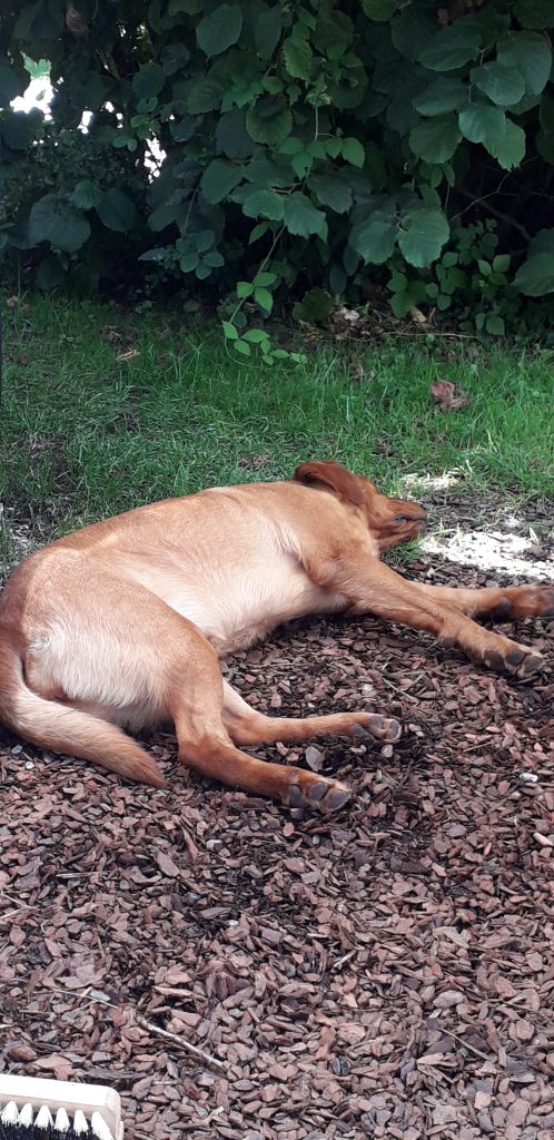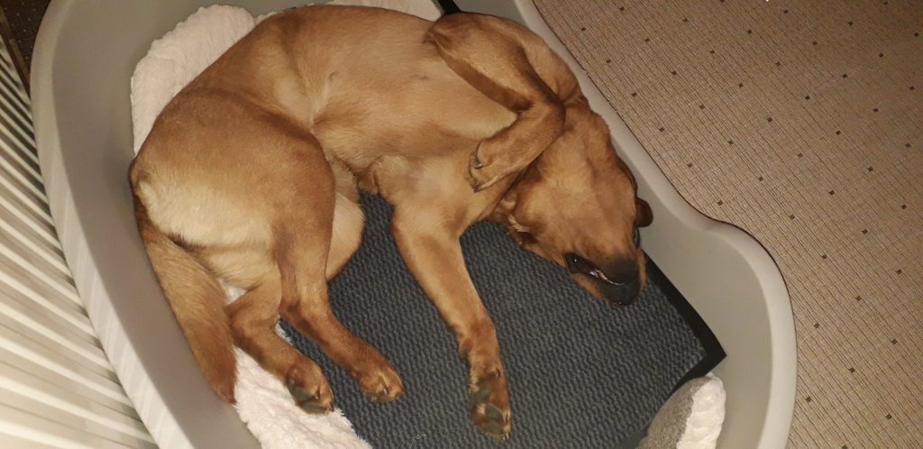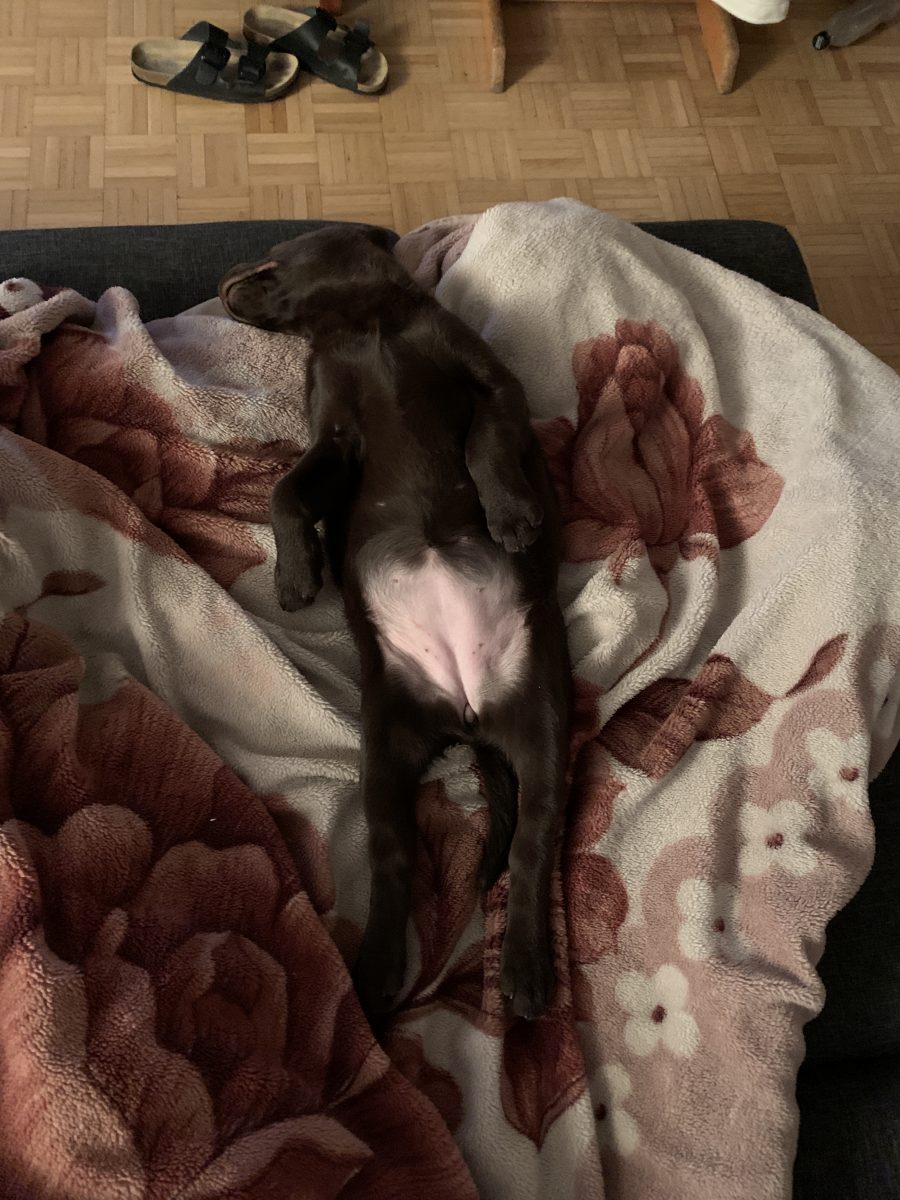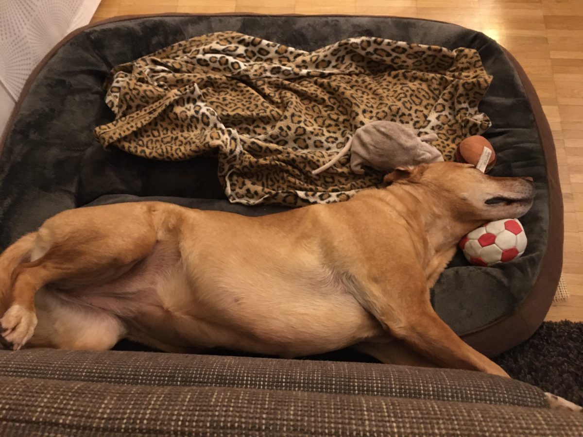 Seit Ellie bei uns eingezogen ist, ist es zeitweise etwas turbulent ;)Wie Sie schon ahnten, hat sie manchmal ganz schön Temperament a b e r sie „benimmt“ sich – wie im Haus erwünscht – sehr ruhig und fast unsichtbar, wenn sie nicht gerade mitten im Weg liegt oder laut schnarcht 😀