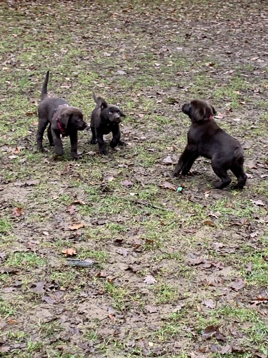 Hallo Frau Wiedenmann, heute möchten wir uns endlich einmal bei Ihnen melden. Die kleine Maus hat sich mittlerweile gut bei uns eingelebt. Tagsüber ist sie eigentlich stubenrein, nachts funktioniert es noch nicht so ganz. Aber das wird schon noch Sie kommt auch ganz gut mit den Kindern zurecht. Der Tierärztin haben wir auch schon einen Besuch abgestattet. Sie ist sehr zufrieden mit ihr Und ihr Gewicht war am Donnerstag 7200g. Mit anderen Hunden versteht sie sich auch ganz gut, sie beobachtet erst einmal und geht dann erst hin Wir haben vor kurzem einen Labrador mit 13 Wochen kennengelernt. Doppelt so gross, daher müssen wir viel dazwischen gehen. Nicht so bei ihren Brüdern, Toni und Xaver, mit denen wir uns heute getroffen haben. Sie hatten super viel Spass und es war gut ausgeglichen Nun schicken wir Ihnen natürlich noch ein paar Fotos mit (leider will sie nicht so richtig vor die Kamera) und verbleiben mit besten Grüssen Lilly, Manuel, Alexander, Thomas und Nadine Staufer